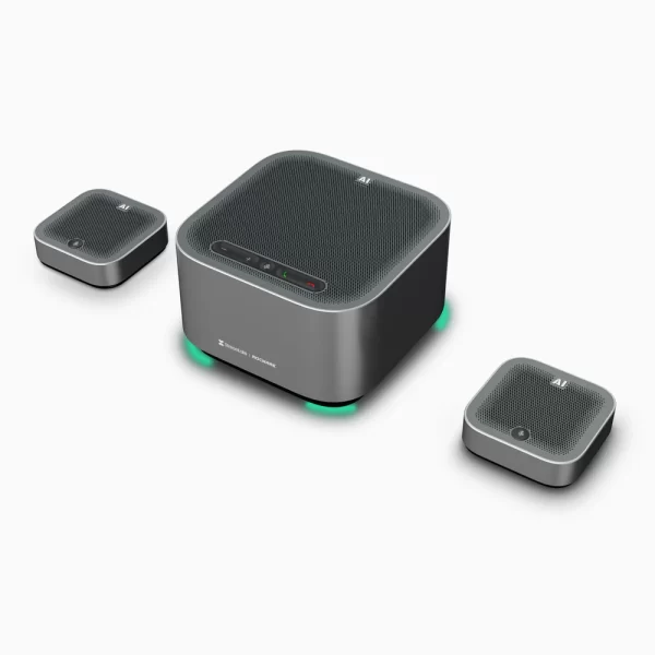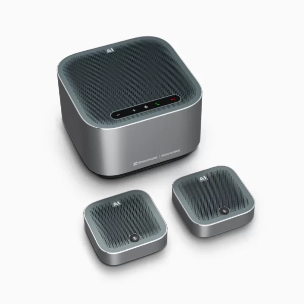 Rocware A10 Mic with speaker provides greater flexibility in huddle room configurations. The primary mic, with four built-in omnidirectional array mics + 2 expansion mics, is optimized for up to 10 meters. So whether people are seated at a table or standing, A10 Mic with 360° omnidirectional pickup, suppress noise, and cancel echo means everyone will be heard clearly.
