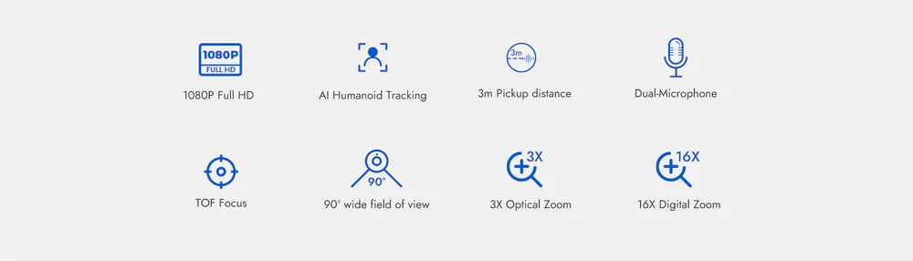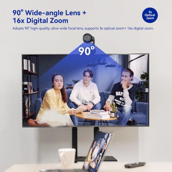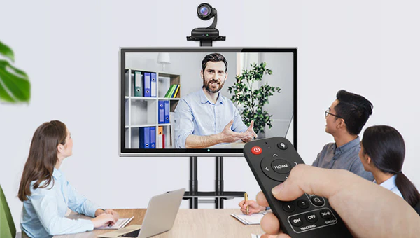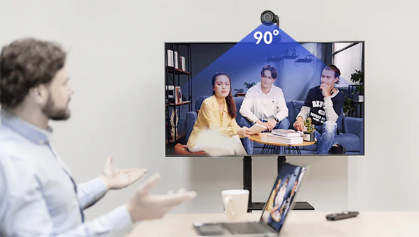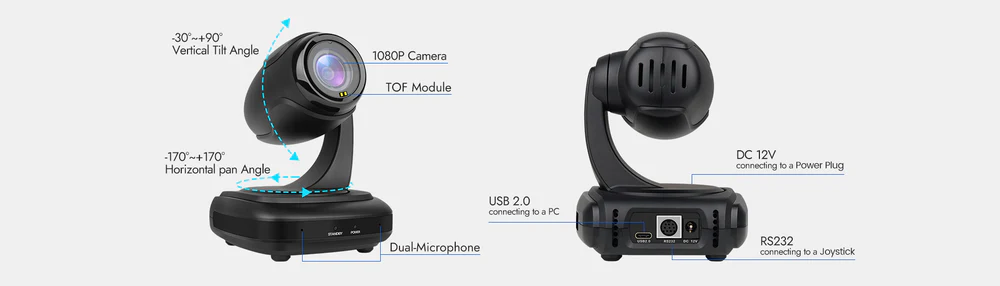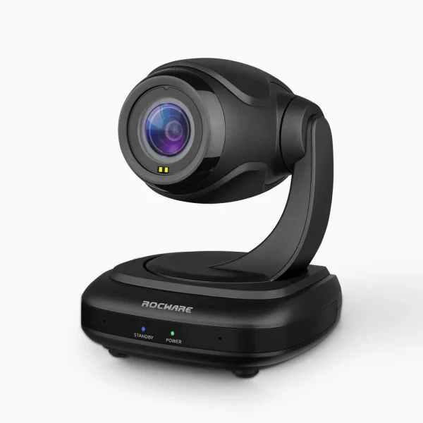 The RC310 1080P HD Mini Video PTZ camera has a 120° vertical tilt angle, 340° horizontal pan angle, and 3x optical zoom. It is compact like a webcam but offers more professional and flexible control.