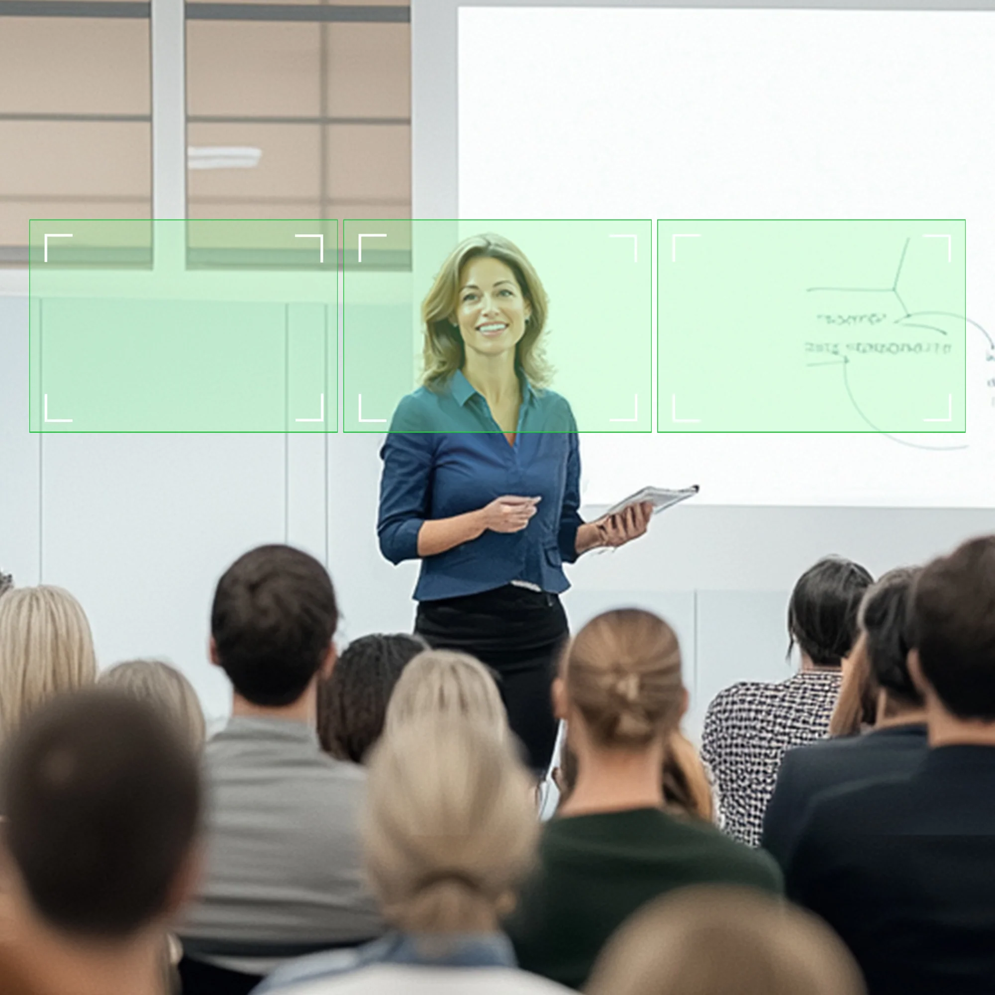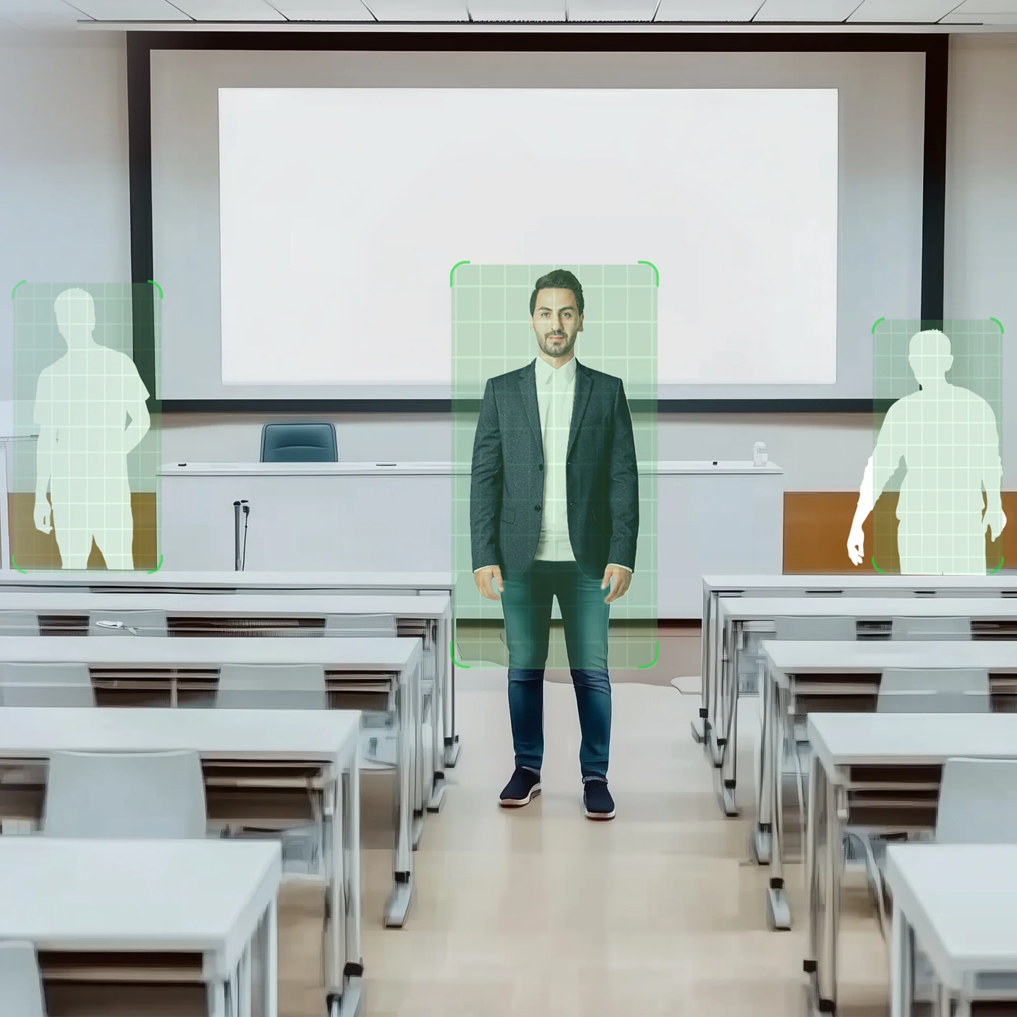 Tracks the speaker’s movement in real-time, keeping them centered in the frame for an engaging, professional presentation.
